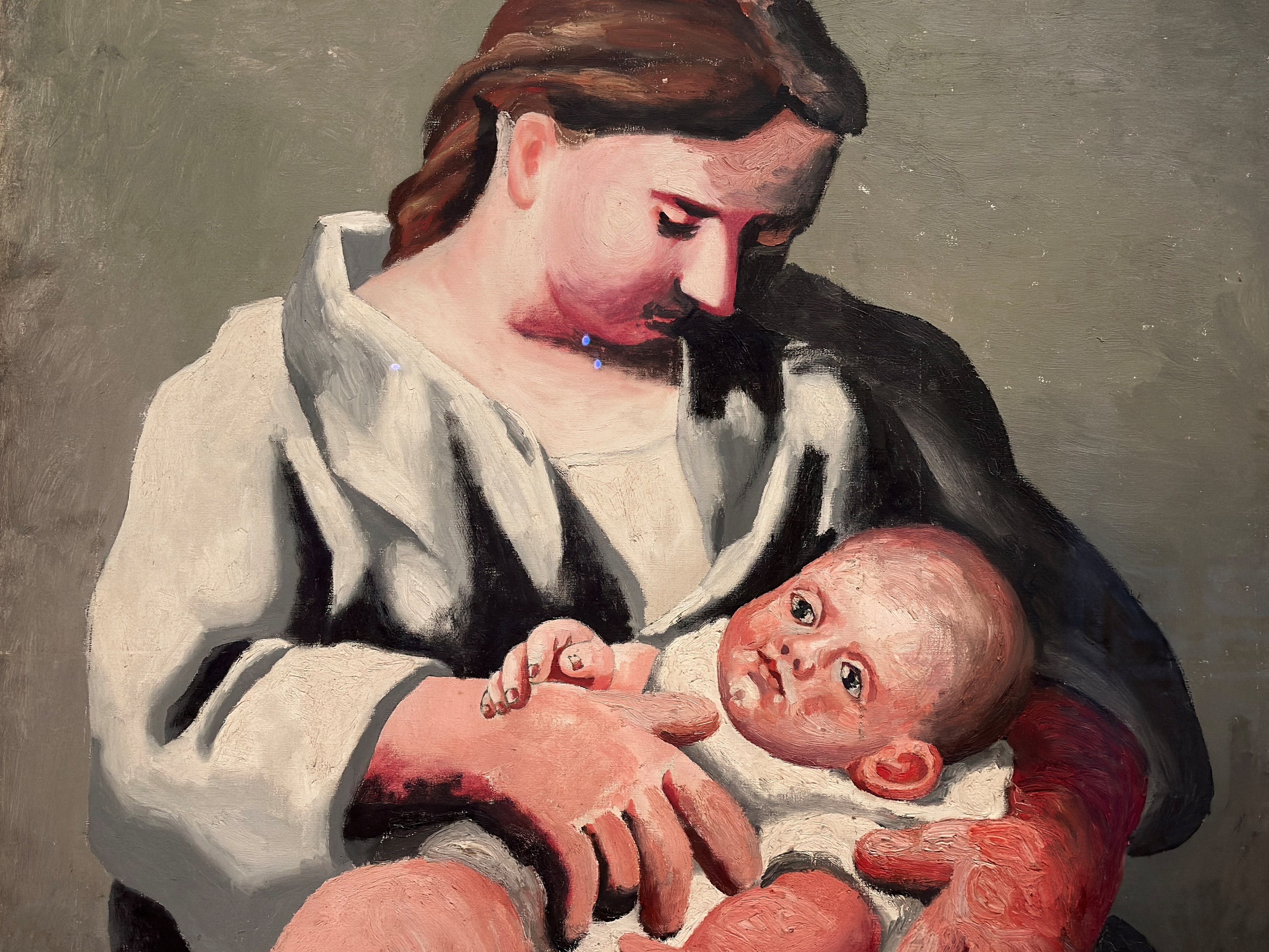 De igual forma, la figura de la Virgen ocupa un lugar relevante. Materiales de la exposición citados por Artnet News recuerdan la admiración juvenil de Picasso por las vírgenes románicas de Gósol y las Sagradas Familias de Alonso Cano y Murillo. Este símbolo femenino regresa en cuadros como "Madre con niño rezando" (1899-1900), "Maternidad" (1921), protagonizada por Olga Khokhlova y su hijo Paulo, y en "Madre con hijo muerto (II). Posdata a Guernica" (ca. 1937), donde la maternidad se convierte en emblema del sufrimiento.