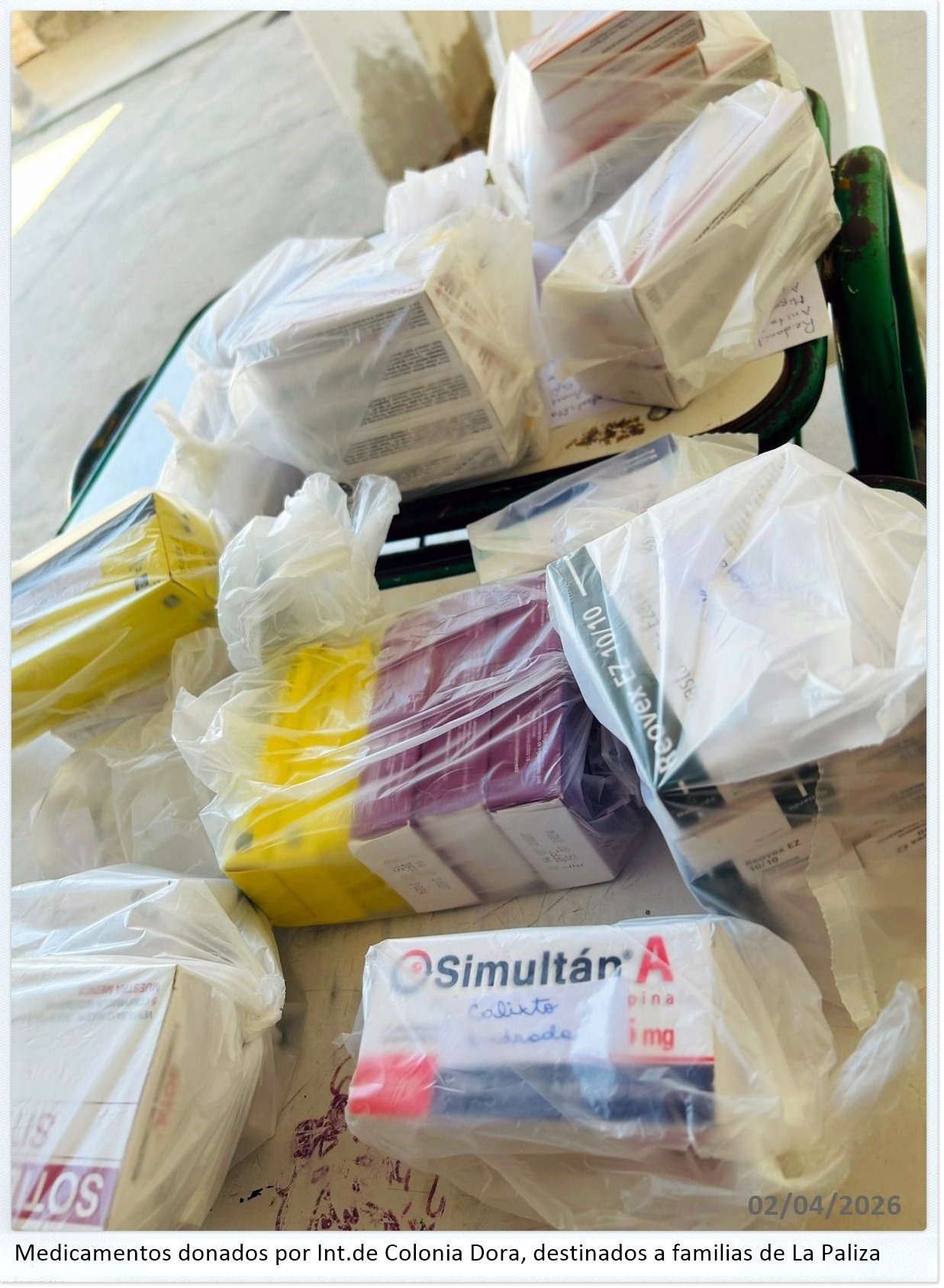 - Gestión Sanitaria: Desde la ONG se extendió un AGRADECIMIENTO especial al intendente de Colonia Dora y a la Sra. Anita Luna por la donación y gestión de los medicamentos distribuidos.