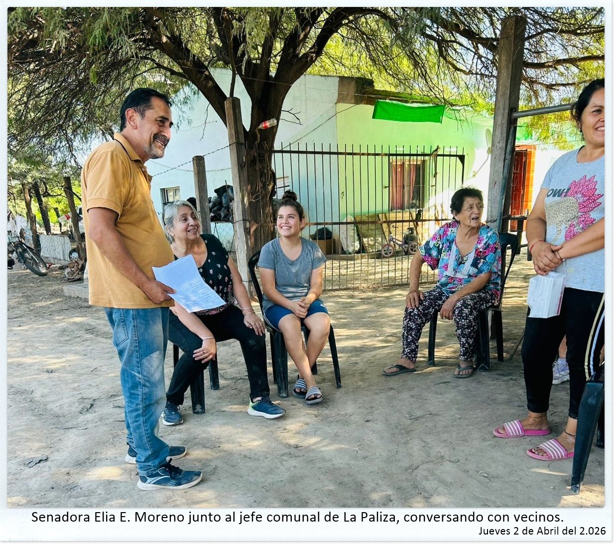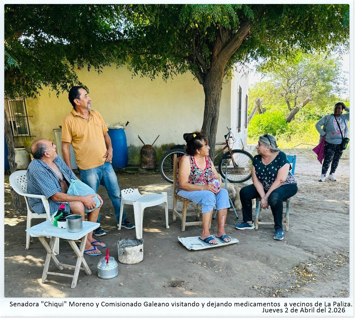 La jornada del jueves 2 de abril del 2026, comenzó temprano en la ciudad de Añatuya. A pesar de ser “feriado nacional”, la comitiva encabezada por la Senadora Elia E. "Chiqui" Moreno, acompañada por la presidente y personal de la Asociación Civil "Tu Salud es mi Trabajo", se organizó y se traslado hasta la zona donde hay muchas familias que padecen el avance de las aguas.