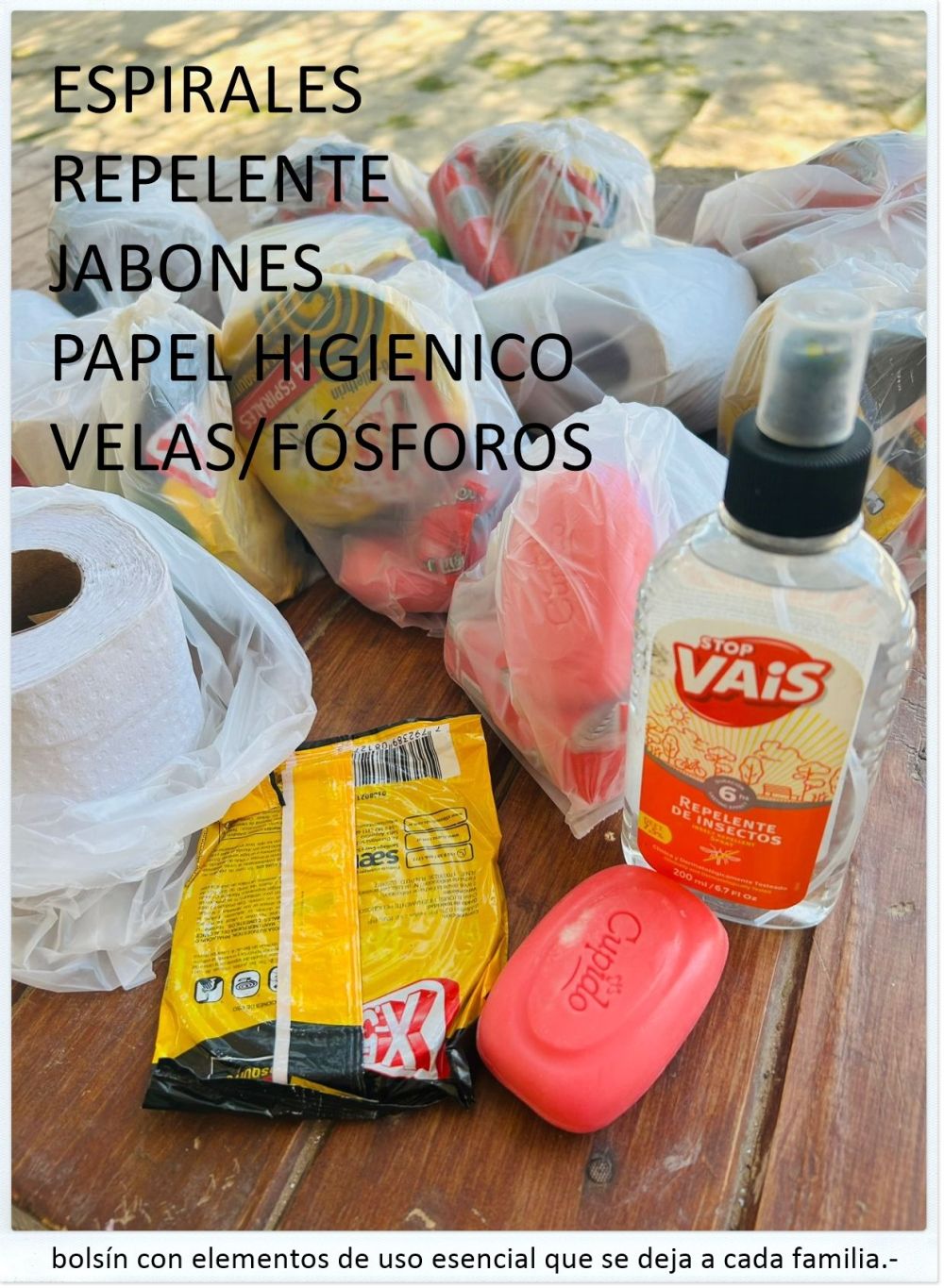 - Aporte de la Senadora Moreno: La Senadora "Chiqui" Moreno no solo puso su vehículo personal para el transporte de todo el cargamento, sino que se encargó de proveer alimentos no perecederos y bolsines con insumos esenciales como espirales, repelentes y elementos de higiene.